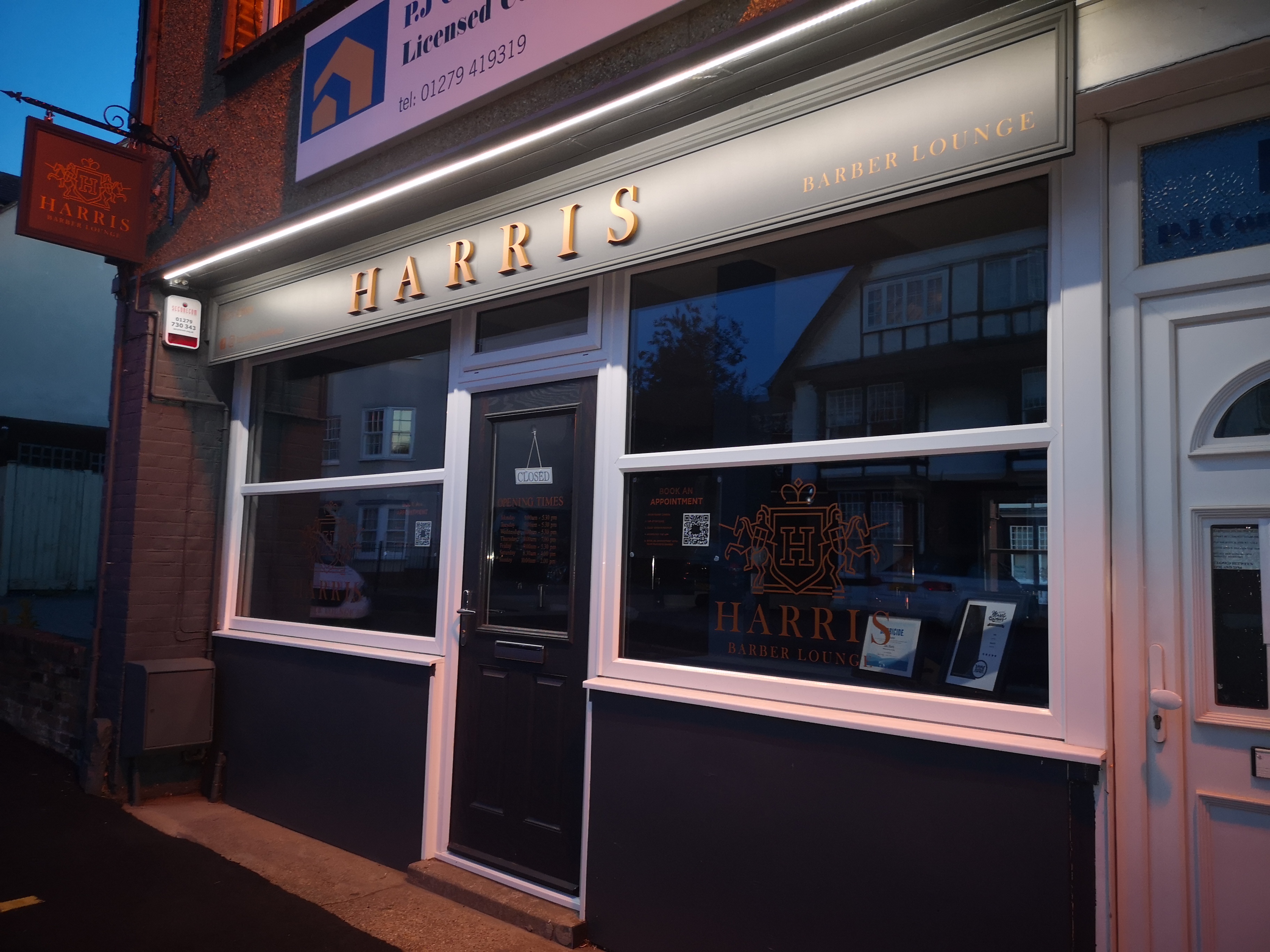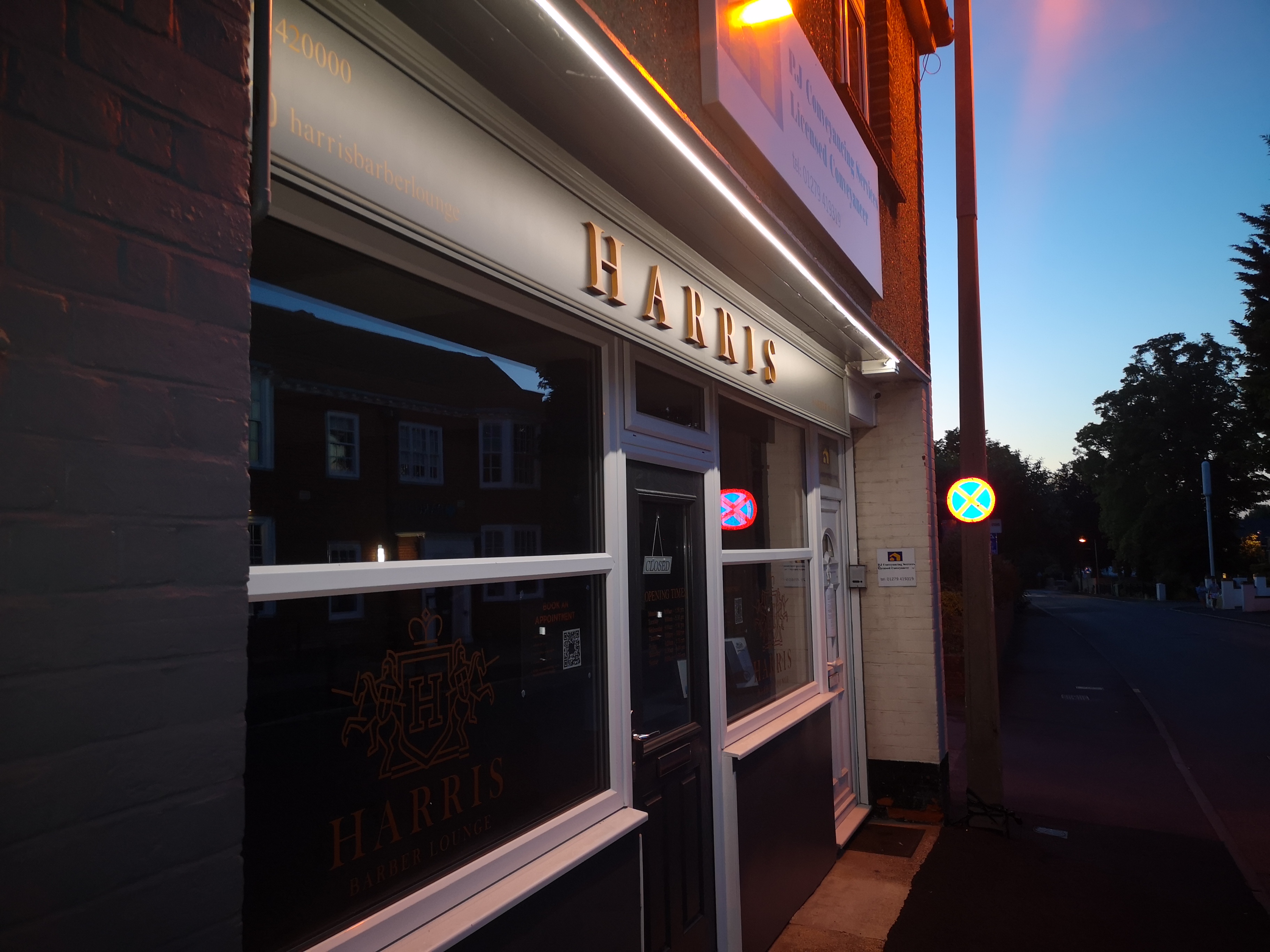 Harris Barbers – Old Harlow: We installed this bright white LED strip to the front façade of the barbershop in Old Harlow. We think it looks great!