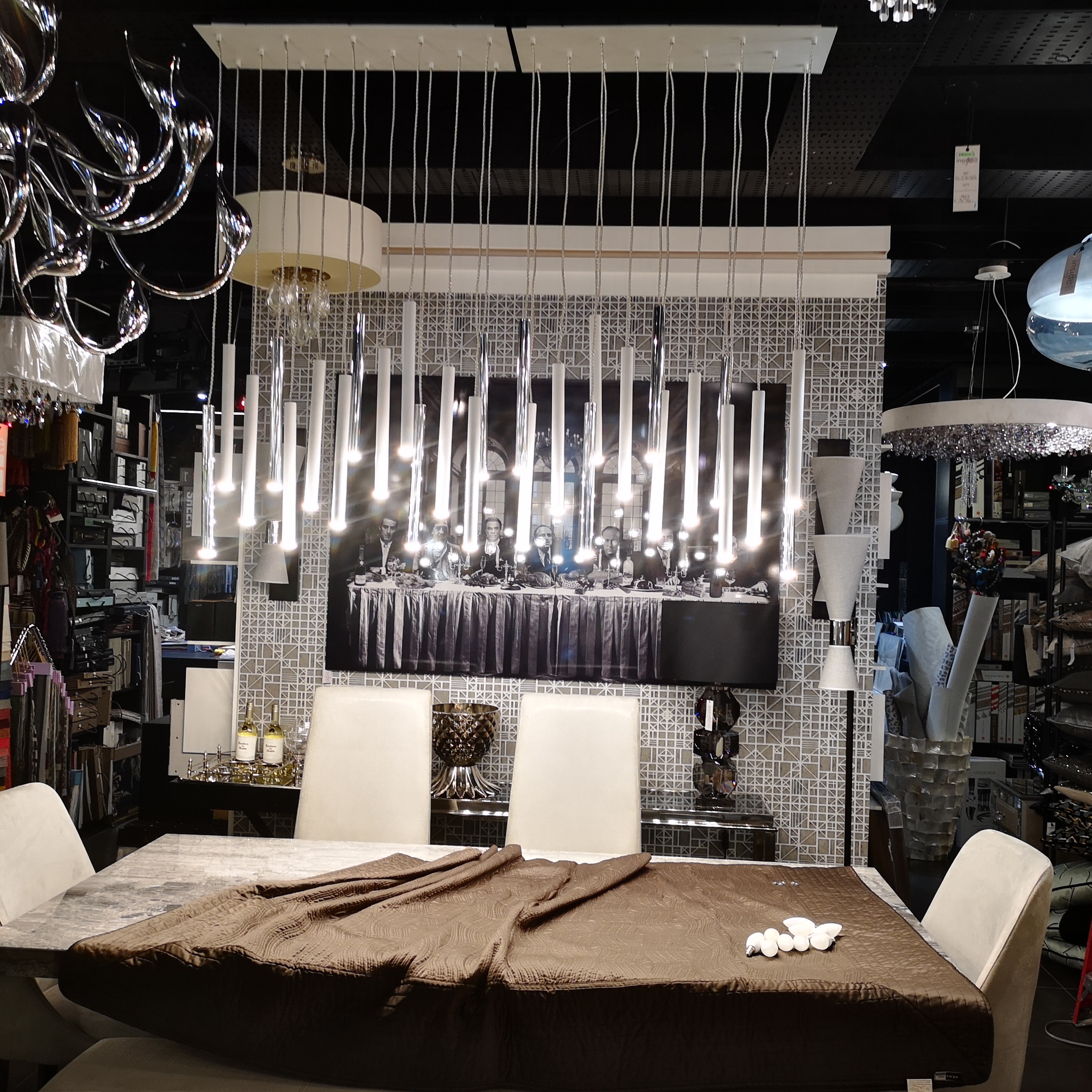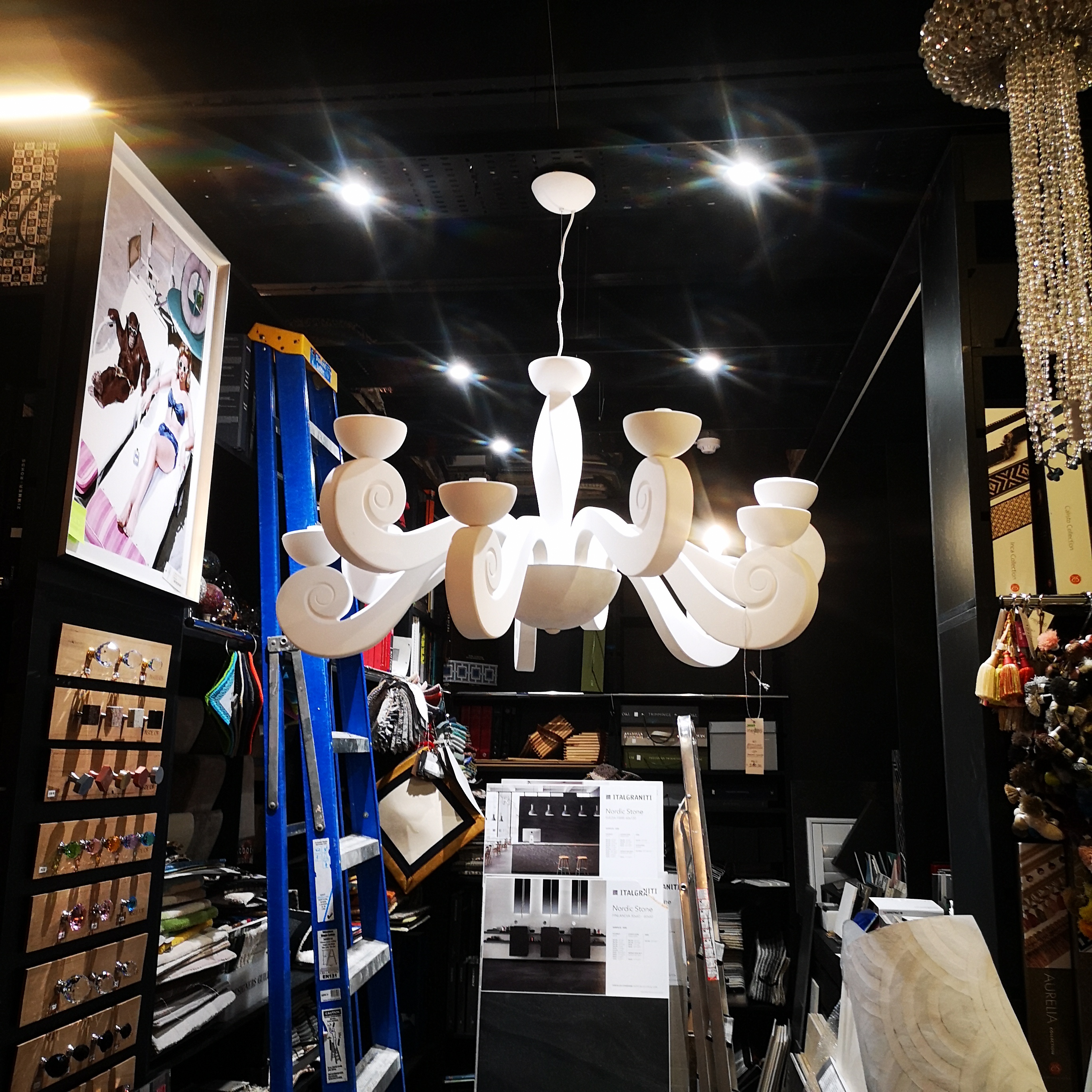 We were lucky enough to work with an interior designer based out of Highams Park in east London. Whilst we haven’t fitted all of the lights throughout the shop, we have indeed fitted the vast majority. I can honestly say, every time I work in this shop, I end the day with the shakes and anxiety! Its impossible to move without knocking something over!