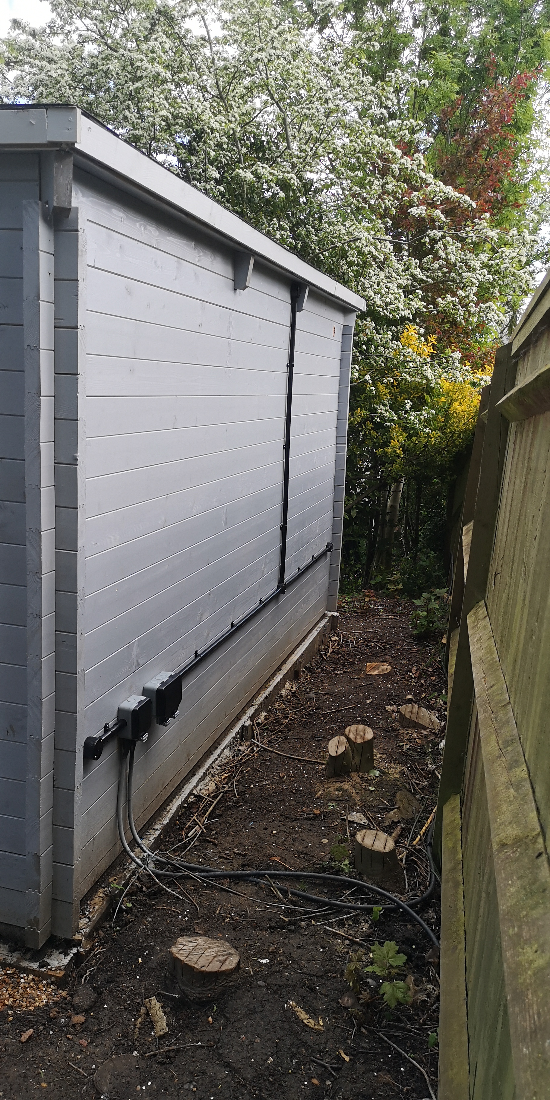 Here are photos of a recent summerhouse Electrics installation that we carried out in Loughton